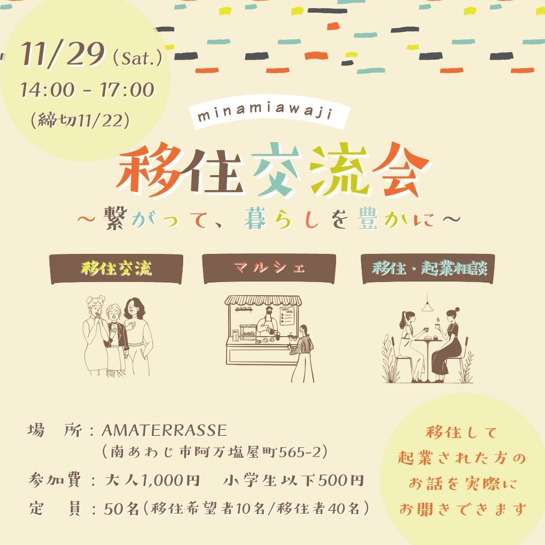 南あわじ市へ移住を検討されている方、移住してから横の繋がりを広げたい方、是非ご参加ください。
